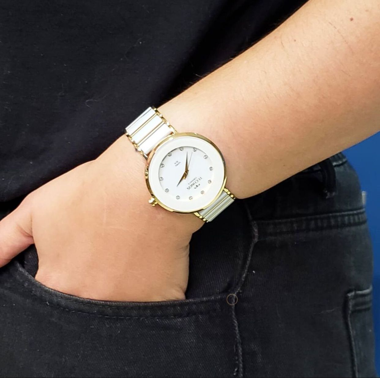 Relogio Technos Cerâmica Branco Ponto De Luz Dentro Caixa 40mm – 2035LMM4B